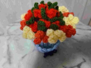 色違いの毛糸で編むだけでまるで本物のお花のような美しさに。